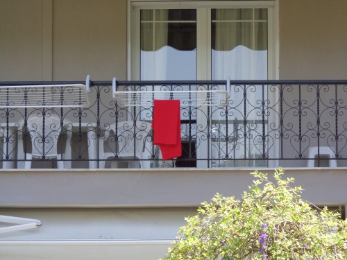 Οι νοικοκυρές στο Ασβεστοχώρι τήρησαν και φέτος το έθιμο και μετά το βάψιμο των αυγών τοποθέτησαν ένα κόκκινο πανί στο μπαλκόνι τους