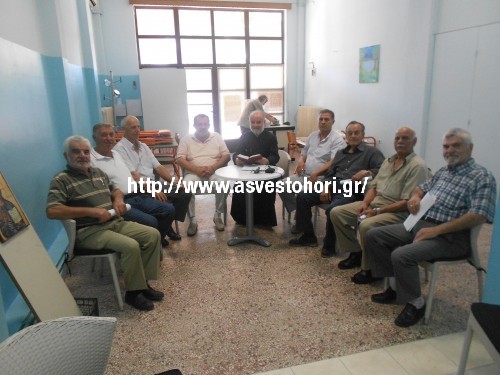 Οι ομιλίες που πραγματοποιεί, εδώ και πολλά χρόνια, ο π. Βασίλειος Εξουζίδης απευθύνονται σε άνδρες, ανεξαρτήτου ηλικίας, και δίνουν απαντήσεις σε ερωτήματα, όπως π.χ. «τι είναι εκκλησία;», «τι είναι προσευχή;», «τι είναι αγάπη σύμφωνα με την πίστη μας;» κ.α. Γίνονται, κάθε εβδομάδα στο γραφείο δίπλα στο ΚΑΠΗ Ασβεστοχωρίου, σε ευχάριστο κλίμα, και συχνά αναπτύσσονται και επίκαιρα θέματα, μετά από σχετικές ερωτήσεις των συμμετεχόντων.