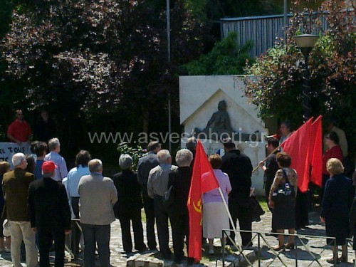 - Στιγμιότυπο από την τελευταία εκδήλωση τιμής προς τον Τάσο Τούση στο μνημείο του στο Ασβεστοχώρι. Την είχε διοργανώσει η Επιτροπή Υπαίθρου του ΚΚΕ, στις 15 Μαΐου 2011. Ελπίζουμε κάποιοι φορείς να τον τιμήσουν και φέτος