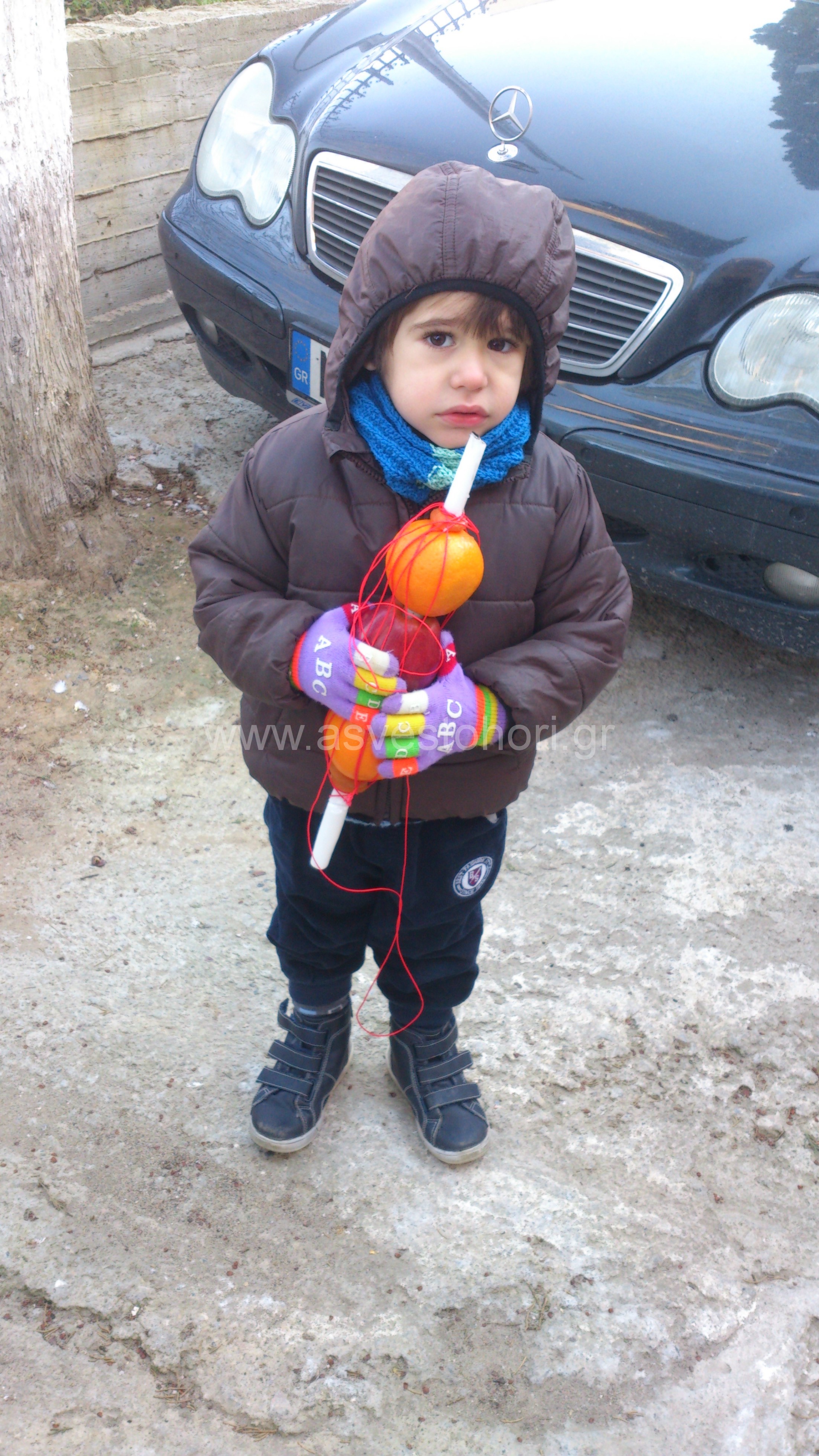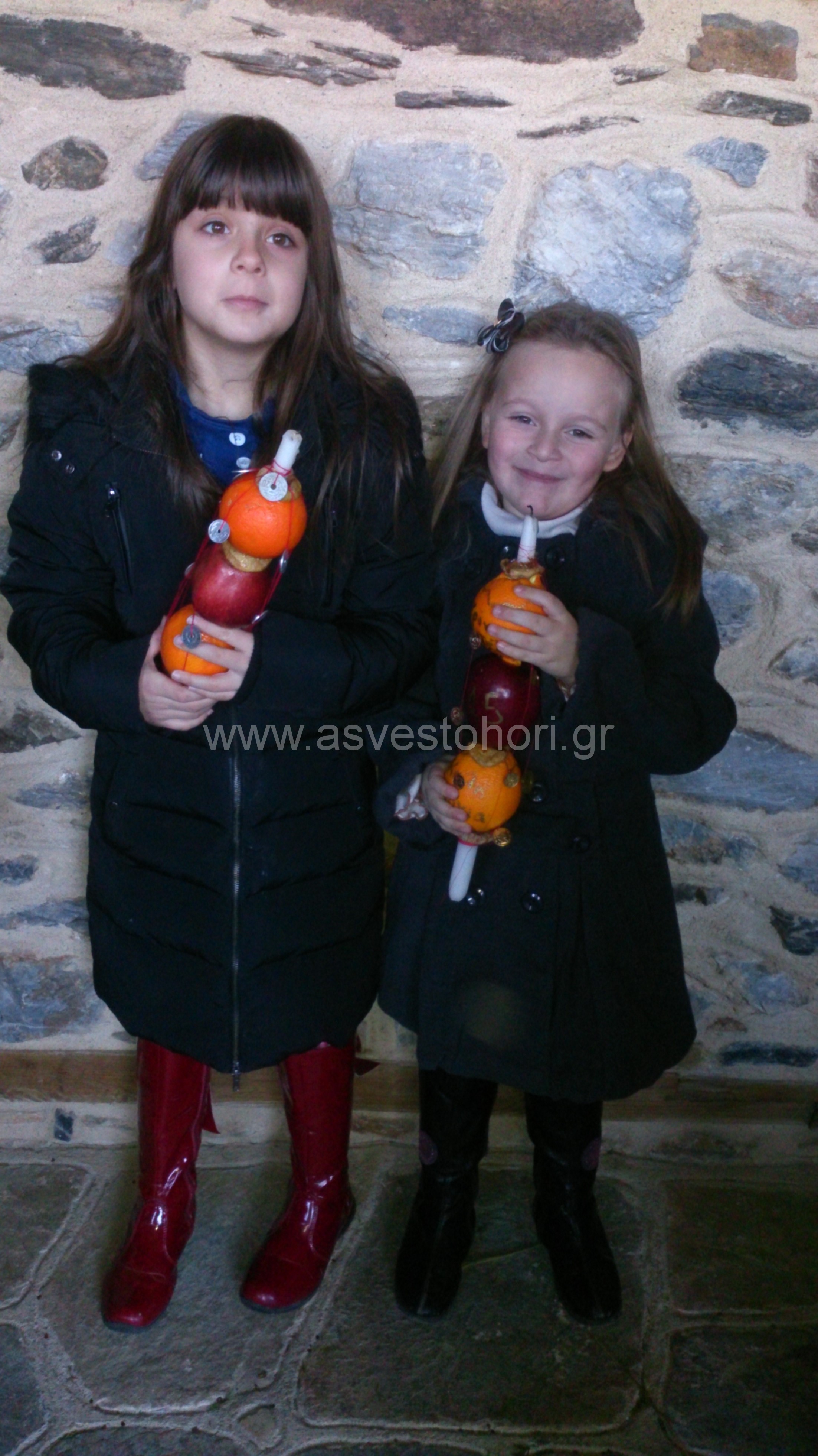 Δεκάδες ήταν τα παιδιά που παρακολούθησαν τη Λειτουργία κρατώντας τα μεγάλα κεριά στα οποία ήταν περασμένα δύο πορτοκάλια και ένα μήλο (λεπτομέρειες στο άρθρο της 5ης Ιανουαρίου http://www.asvestohori.gr/?p=4864).