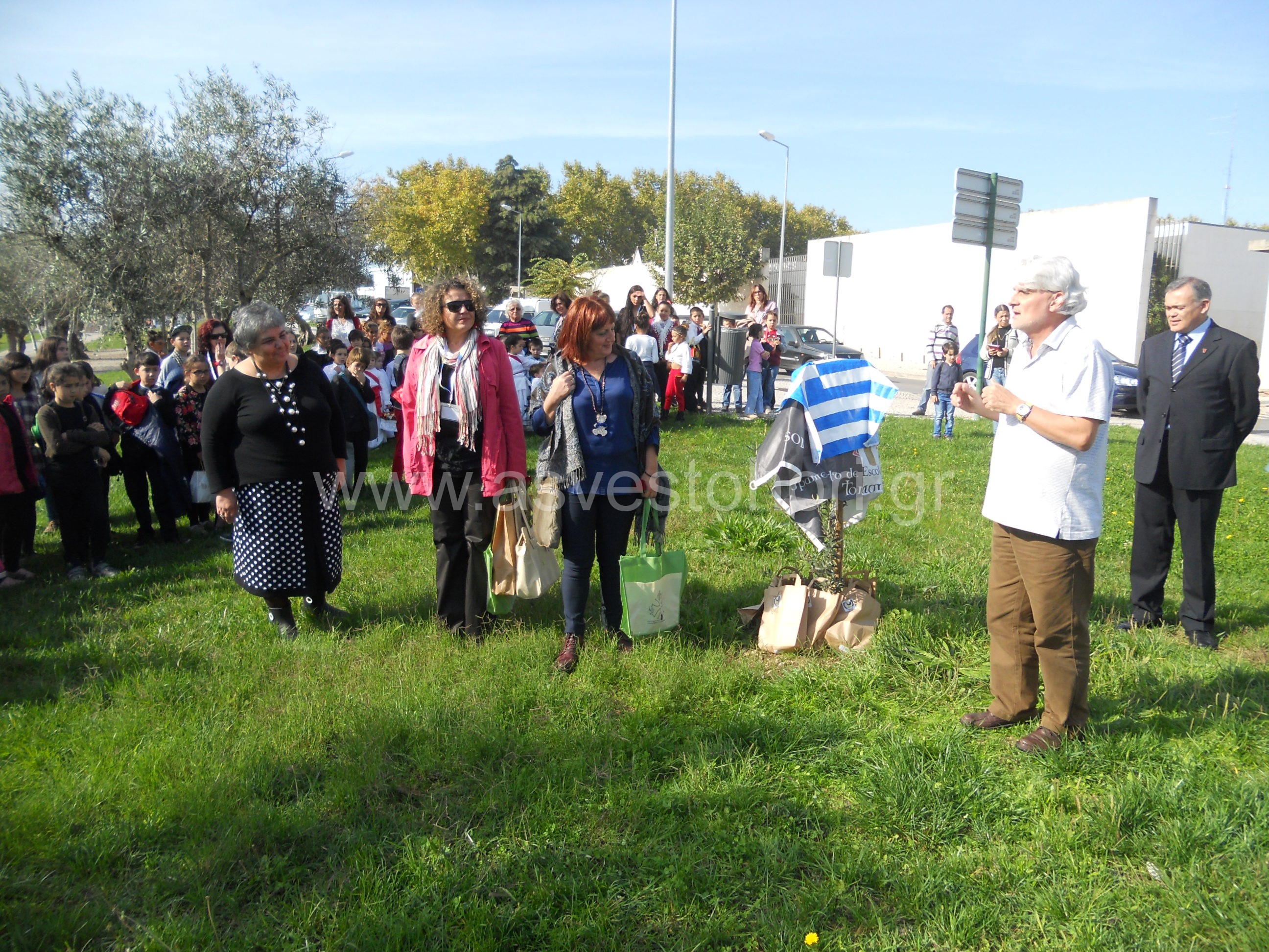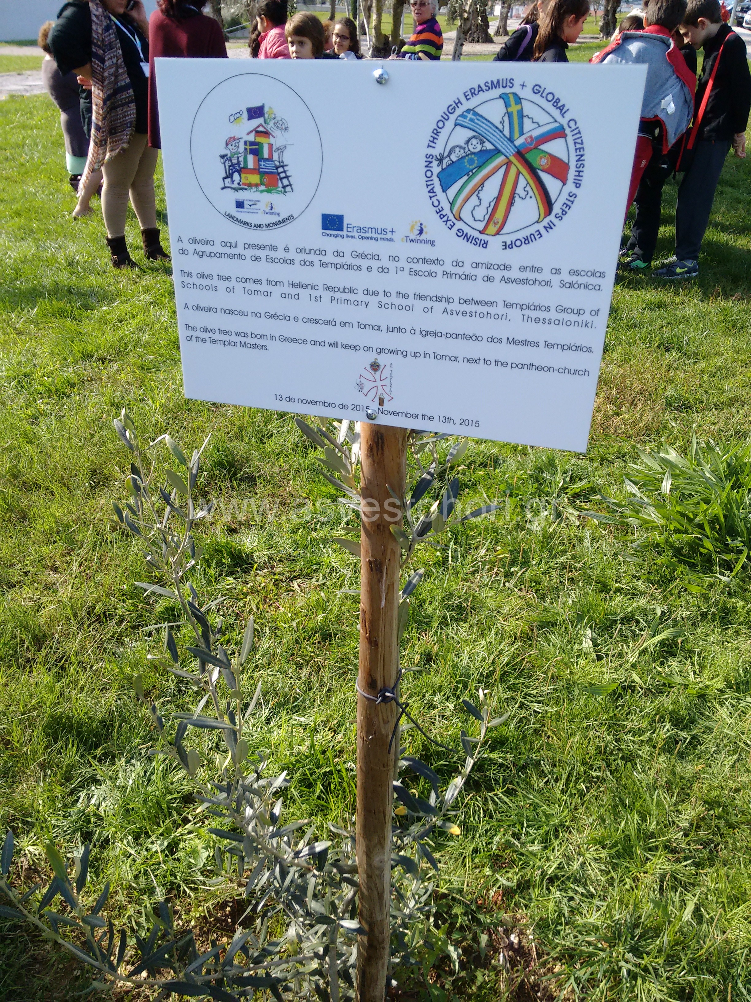 Η πιο σημαντική και συγκινητική στιγμή όμως -ιδιαίτερα για την ελληνική αποστολή- ήταν η τελετή που έλαβε χώρα στο «πάρκο της ελιάς» όπως αποκαλείται. Εκεί, αναπτύσσεται μία ασημόχρωμη ελληνική ελιά που χάρισε το Ελληνικό Σχολείο στο Σχολείο της Πορτογαλίας το Μάιο του 2013. Οι μαθητές του Πορτογαλικού Σχολείου τη φύτεψαν στο πάρκο που είναι απέναντι από την εκκλησία Santa Mariados Olivais, την πιο παλιά εκκλησία της πόλης που χτίστηκε στα μέσα του 12ου αιώνα από τον GualdimPais, ιδρυτή της πόλης του Τομάρ και Μαγίστρου του Τάγματος των Ναϊτών Ιπποτών. Ο Δήμος του Τομάρ μάλιστα τοποθέτησε μια πινακίδα στην οποία αναγράφεται το όνομα του 1ου Δημοτικού Σχολείου Ασβεστοχωρίου για να θυμίζει σε όλους την κοινή προσπάθεια και τα αποτελέσματα που επιτυγχάνονται μέσω αυτής. Η αποκάλυψη της πλακέτας, που ήταν σκεπασμένη με την ελληνική σημαία, έγινε κατά τη διάρκεια της συνάντησης παρουσία μαθητών, εκπαιδευτικών και τοπικών παραγόντων.